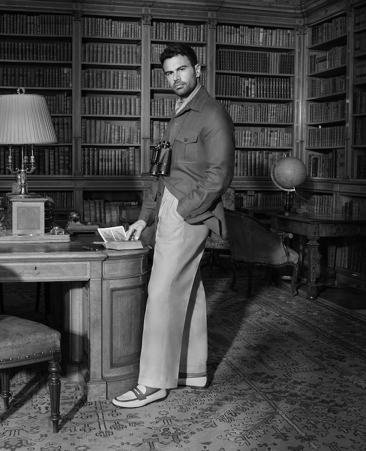 Dans le deuxième chapitre d'une histoire qui a commencé avec la collection Automne/Hiver 2025, l'ambassadeur de la marque Theo James incarne à nouveau les charmantes bizarreries d'un monde aristocratique révolu. Située dans le même magnifique manoir de campagne anglais, la campagne Printemps/Été 2026, « A Day in the Life - Part II », a été capturée par le photographe Phil Poynter sous la direction créative de David James.