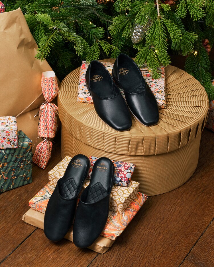 A playful family gathering at St. Giles House, starring a cast of exuberant characters exchanging gifts and engaging in society games in the spirit of the season, takes centre stage in the new Holiday campaign with creative direction by David James, photography by Phil Poynter, and styling by Tom Guinness. From dancing on tables in shiny Oxfords to relaxing in sumptuous slippers, the images and video capture Church's design's inherent English eccentricity and versatility.