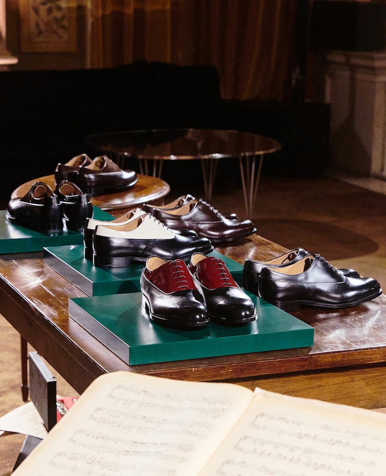 Inspired by music and orchestras, the presentation of Church’s Autumn Winter 2026 collection transformed Palazzo Barozzi into an imagined maestro’s studio: a realm of intellectual fervour, creative exploration, and meticulous discipline, drawing an analogy between the artistry of musical instruments and the finesse of shoemaking. Visionary soundscapes, curated by musical maverick Ruggero Pietromarchi, accompanied the occasion, with live recitals by Renato Grieco, Riccardo La Foresta, and Agnese Menguzzato punctuating moments throughout the day.